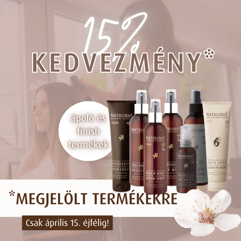 Április 9. és 15. között most a megjelölt ápoló és finish termékeinket 15% kedvezménnyel szerezhetitek be webshopunkból. Itt az idő, hogy beszerezd kedvenc NATULIQUE termékeidet!